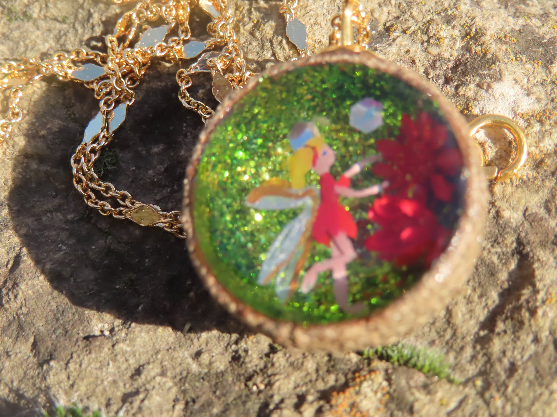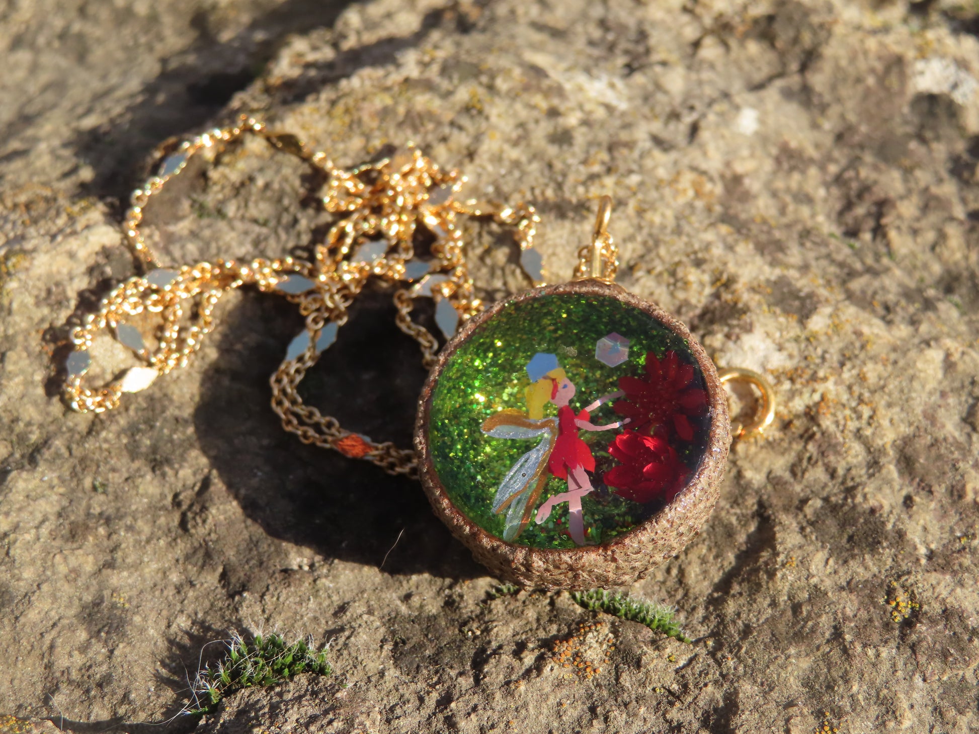 Chaque cupule est une pièce unique, réalisée à la main avec intention. En son cœur se déploie une fée, entourée de fleurs, de couleurs scintillantes et d’éléments symboliques, comme une porte ouverte vers les mondes subtils.
