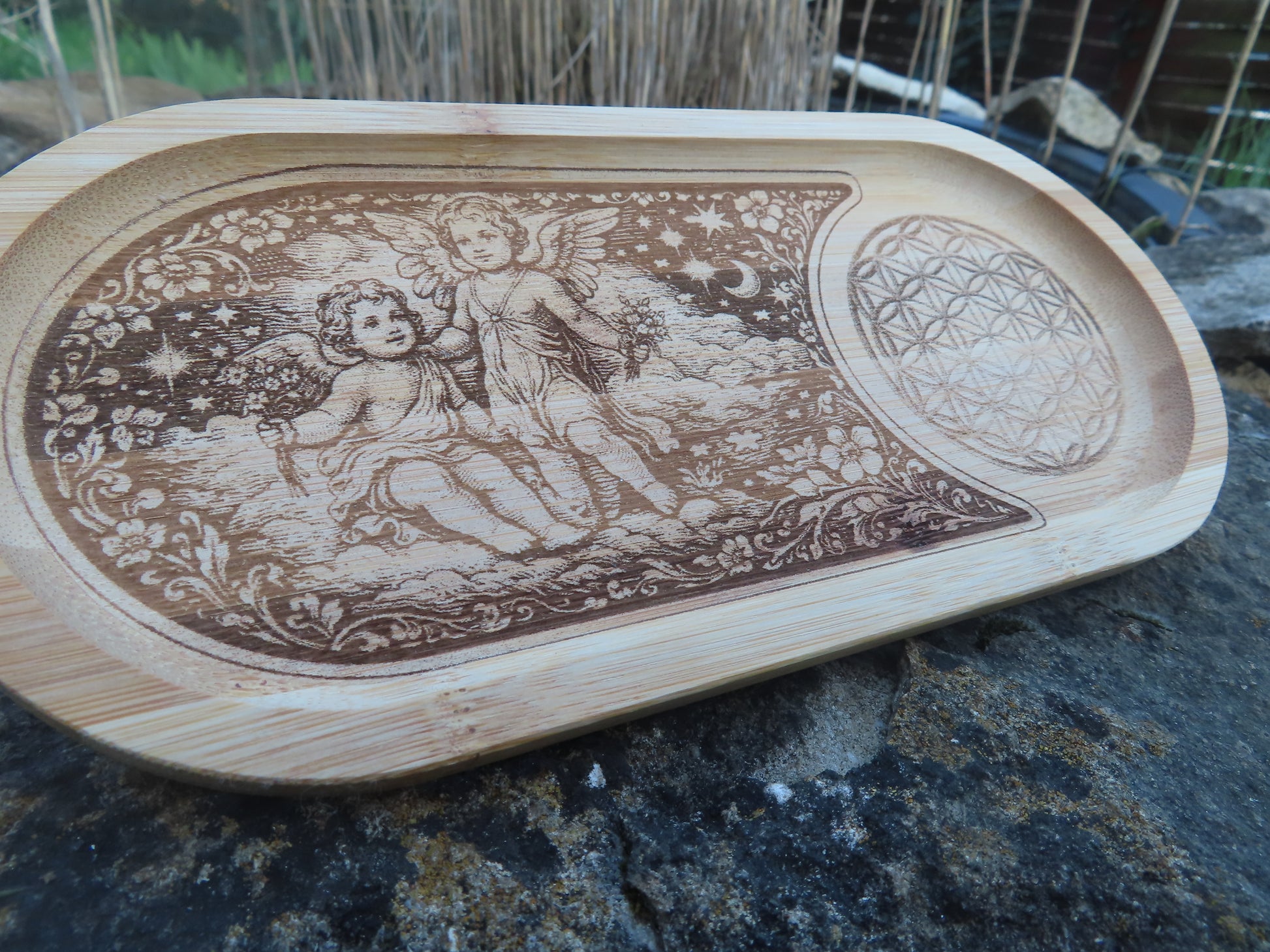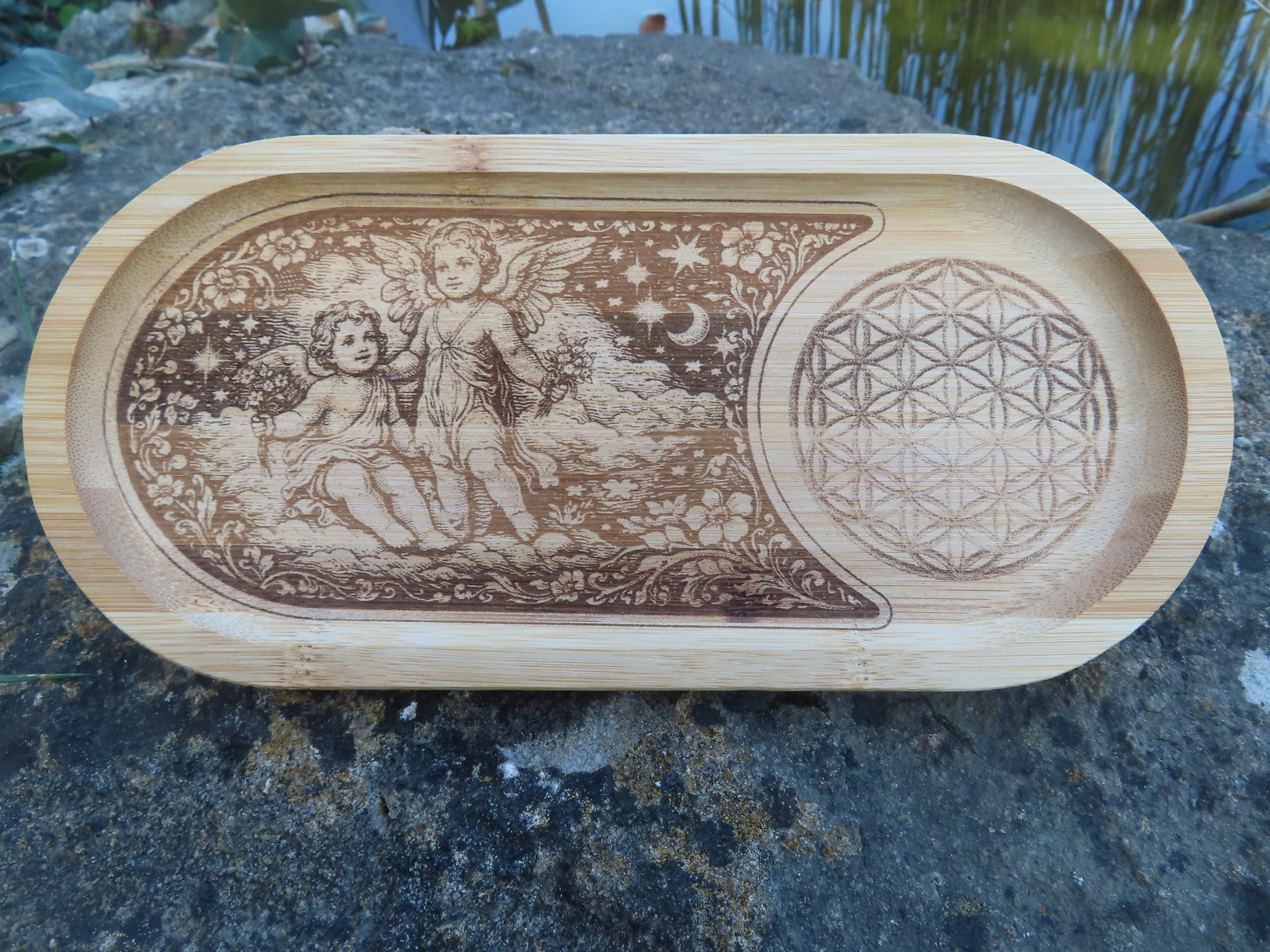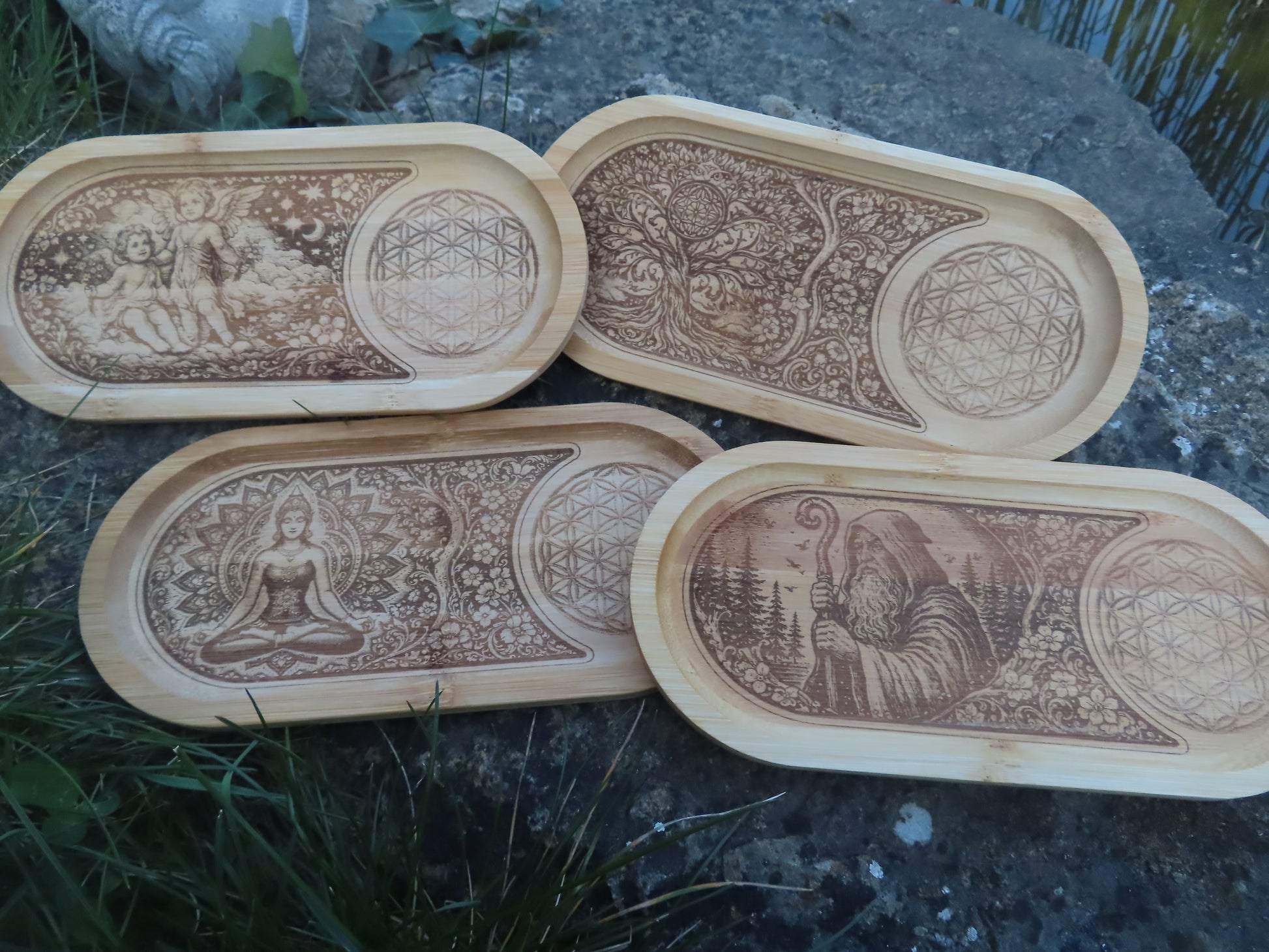 Cette plaquette en bambou gravée, conçue avec soin, est un véritable support énergétique dédié à l’harmonisation de vos objets spirituels : pendules, oracles, runes, pierres, bijoux ou tout accessoire de pratique.