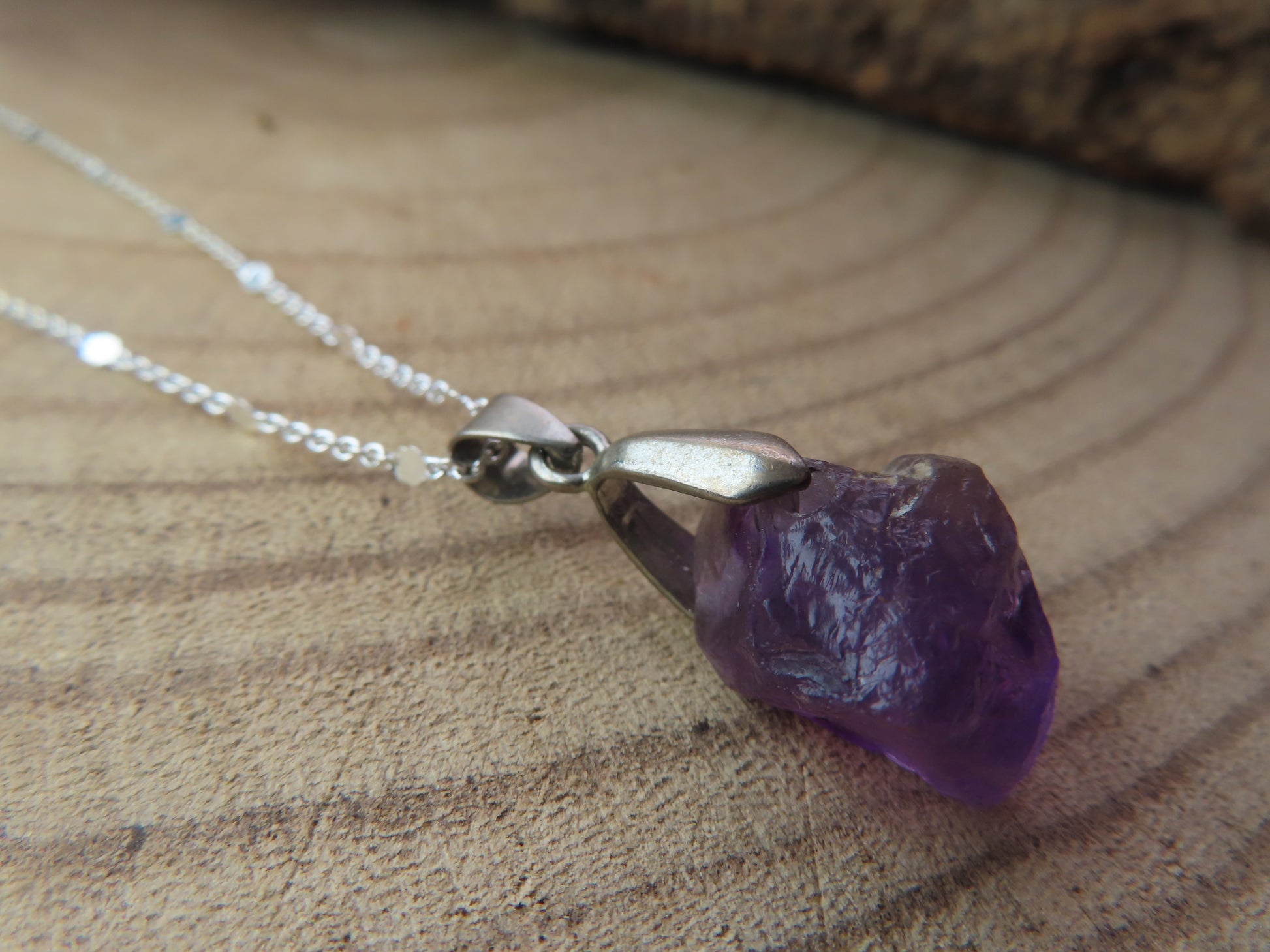 💎 Pendentif en Améthyste – Chaînette acier inoxydable argentée