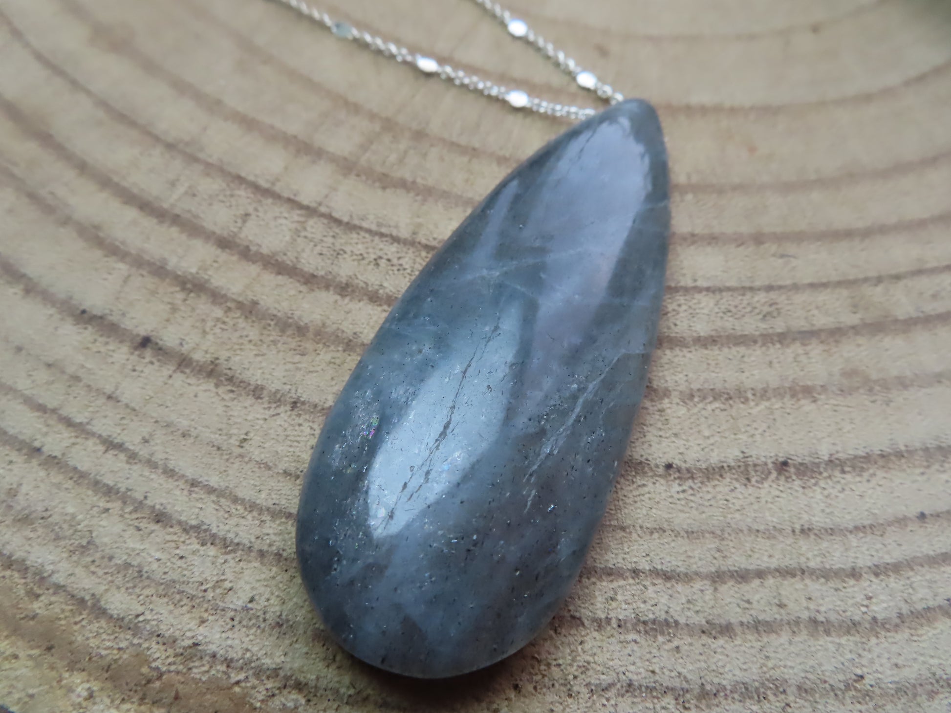 💎 Pendentif en Labradorite – Chaînette acier inoxydable argentée